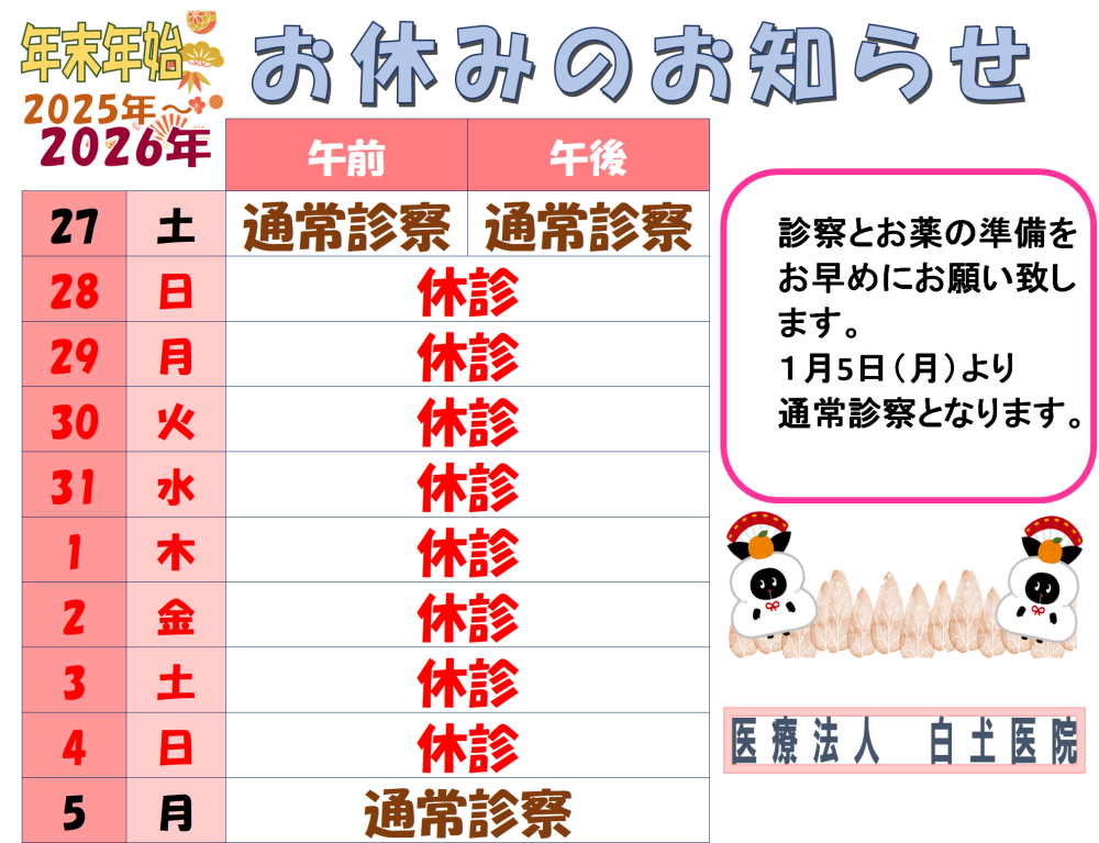 年末年始の休診のお知らせ