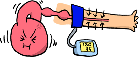 心臓から全身に血液を送り出していますが、高血圧症とは血液が全身に送り出される際に血管にかかる力が正常値よりも高くなる病気です。血圧が高い状態が続いていると、心臓や血管に大きな負担が掛かり続けていることになります。