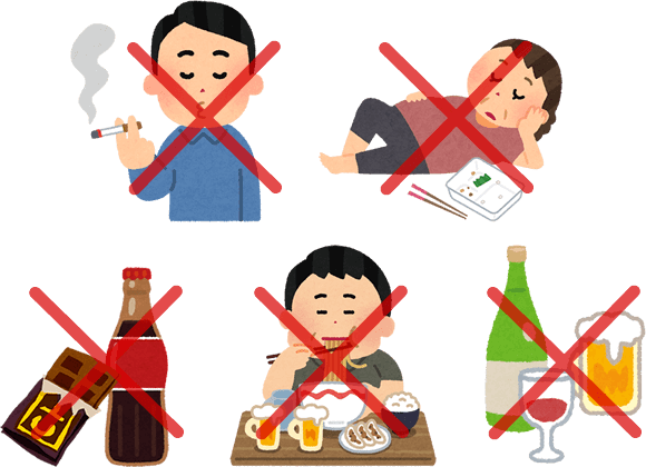 - 脂っこい食べ物(ファーストフードなど)の過剰摂取は控える