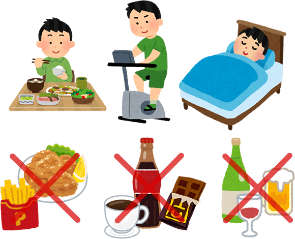 過敏性腸症候群は日々の生活にも大きく関わります。そのため生活習慣の改善は大切となります。「規則正しい食事、1日3食を毎日しっかり食べる」「定期的に運動する」「睡眠時間もしっかりと取る」などを心掛けて下さい。