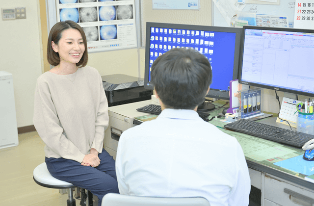 ②内視鏡室に入っていただき、左側を向いて横になります。