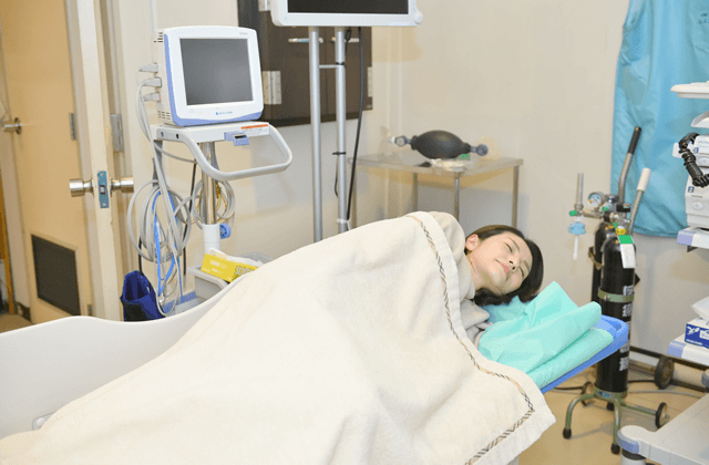 当院では大腸カメラ検査施行時に身体的に問題なければ鎮静剤を使用します。鎮静剤を使用することで、眠ってリラックスした状態で検査を受けていただけます。また鎮静剤を使用することで、患者様の検査時の力みもなくなりますので内視鏡スコープの挿入が楽になったり、消化管の動きが落ち着きますので検査の質向上にも繋がります。その他の特徴としては、看護師スタッフがサポートしながら院内で下剤が飲めたりと、患者様皆様にご安心していただく環境を整えています。
